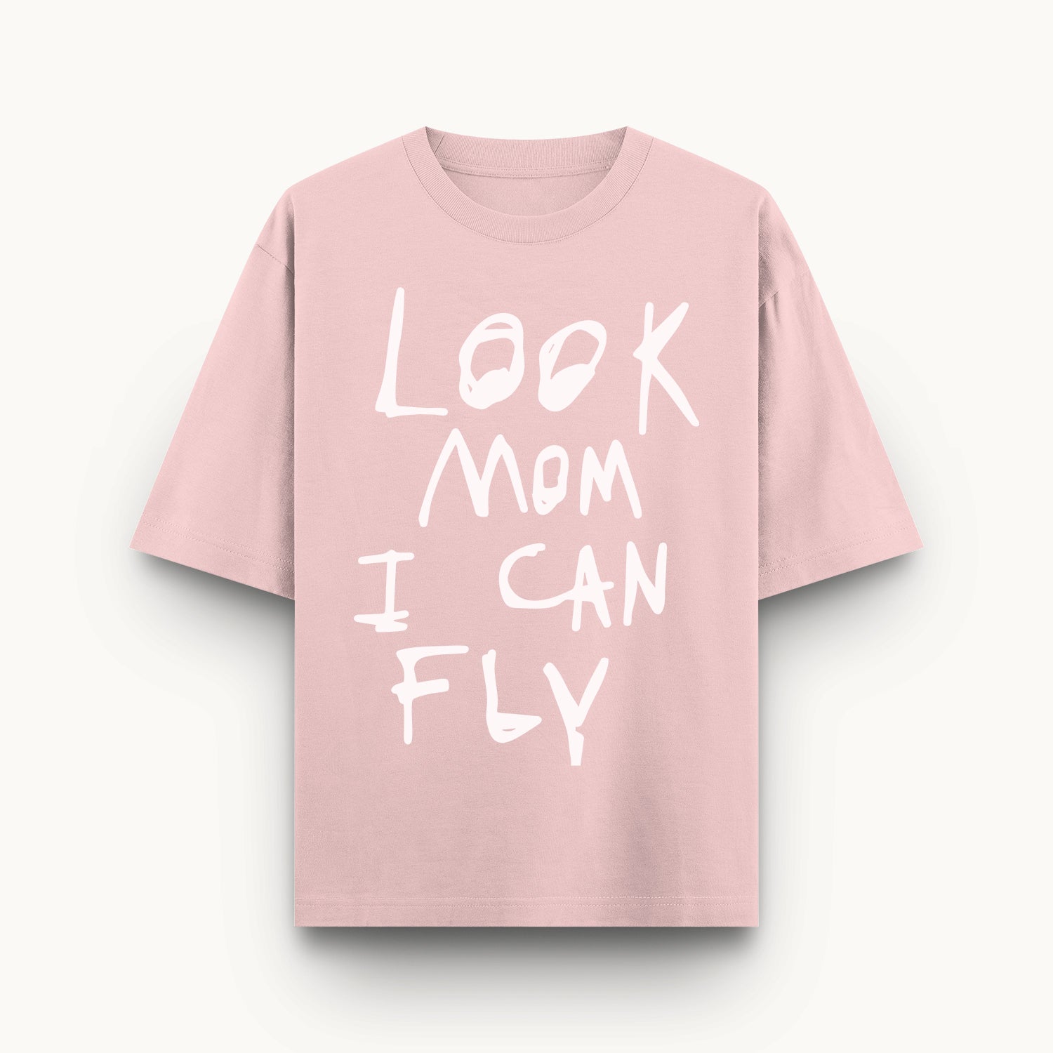(oversized t-shirt, lavender t-shirt, unisex oversized tee, heavy GSM t-shirt, aesthetic t-shirt India, typography streetwear, Skullmask clothing, pastel streetwear, look mom I can fly tee)
